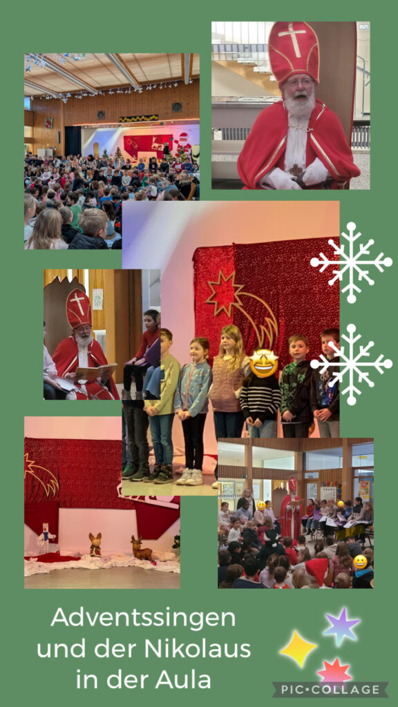 Da der 6. Dezember auf ein Wochenende fiel, besuchte uns der Bischof Nikolaus etwas verspätet am 9. Dezember in der Aula. Mit vielen warmen Worten erfreute er die Kinder und brachte allen einen Schokololli und eine Mandarine mit. Herzlichen Dank an unseren Nikolaus Herrn Senn.